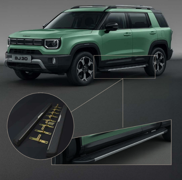 Los estribos laterales ofrecen mayor comodidad y seguridad al ingresar o descender del vehículo, además de aportar un toque deportivo y robusto al diseño de la BJ30.